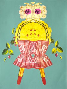 Marika Christofides of Stillwater, Oklahoma, “Cyborg Daughter,” photolithography and silkscreen