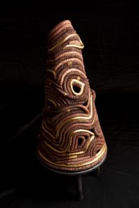 Joy Okokon of Springfield, Missouri, “Shuku III,” terracotta clay and gold leaf