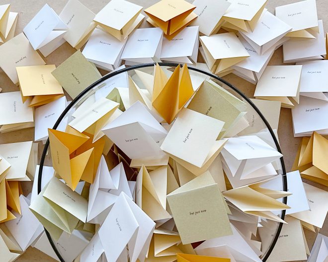 Words are often treated as carriers of meaning – read, interpreted, and set aside. In the Arkansas Women to Watch 2026: Words Become Matter exhibition, presented by the Arkansas Committee of the National Museum of Women (ACNMWA), language takes on physical form. Folded, printed, stitched, mailed, cut, and constructed words move beyond the page to become objects that invite close looking, touch, and participation.