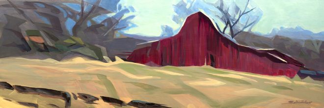 Featured image: “Red Barn” by Steven Schneider (c), 12”h x 36”w – acrylic on wood panel