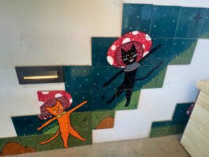 In November 2024, the second work, “Moonlit Merriment in the Meadow by McKenna Hussey, was installed in the Best Friends Pet Resource Center Catio. Through 159 sq. ft. of ceramic tile, Hussey allows viewers to see the world through the eyes of a cat.