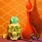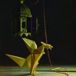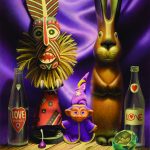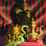 He said, “We find origami represented in still life paintings, sure, usually in a predictable way, but Origami Dragons are mine. Generally speaking, I am presenting a representation of physical reality sprinkled with implied fantasy.”