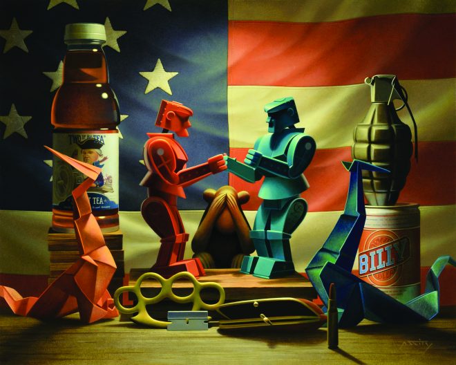 “For me, still life was not about the typical fruit bowl, but rather an arena to explore artistic ideas. I hope to demonstrate that still life can be exciting and vibrant. It’s about symbolism and metaphor, of course, but I specifically responded to the storytelling element,” Cassity said, likening the process of producing a painting to that of playing with objects as a kid.